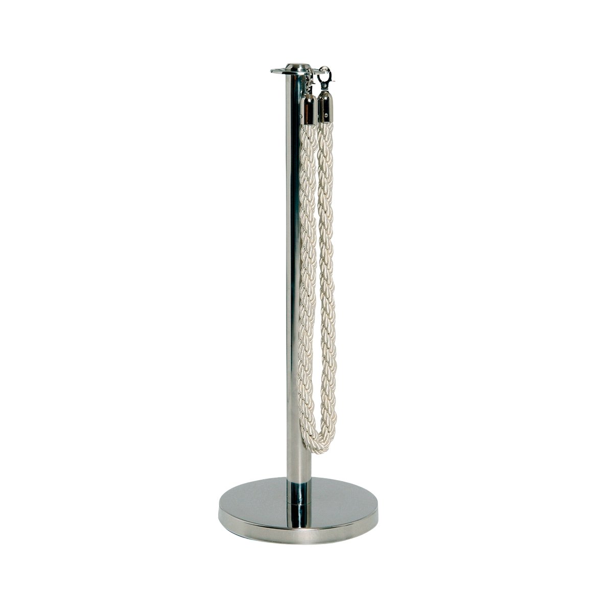 Le cordon tressé proposé à la location est d’une longueur de 2 mètres. Il est composé d’un embout en métal chromé ou or venant s’accrocher au potelet assorti. Cette corde est disponible en blanc ou en rouge à coordonner selon le choix de votre poteau.
